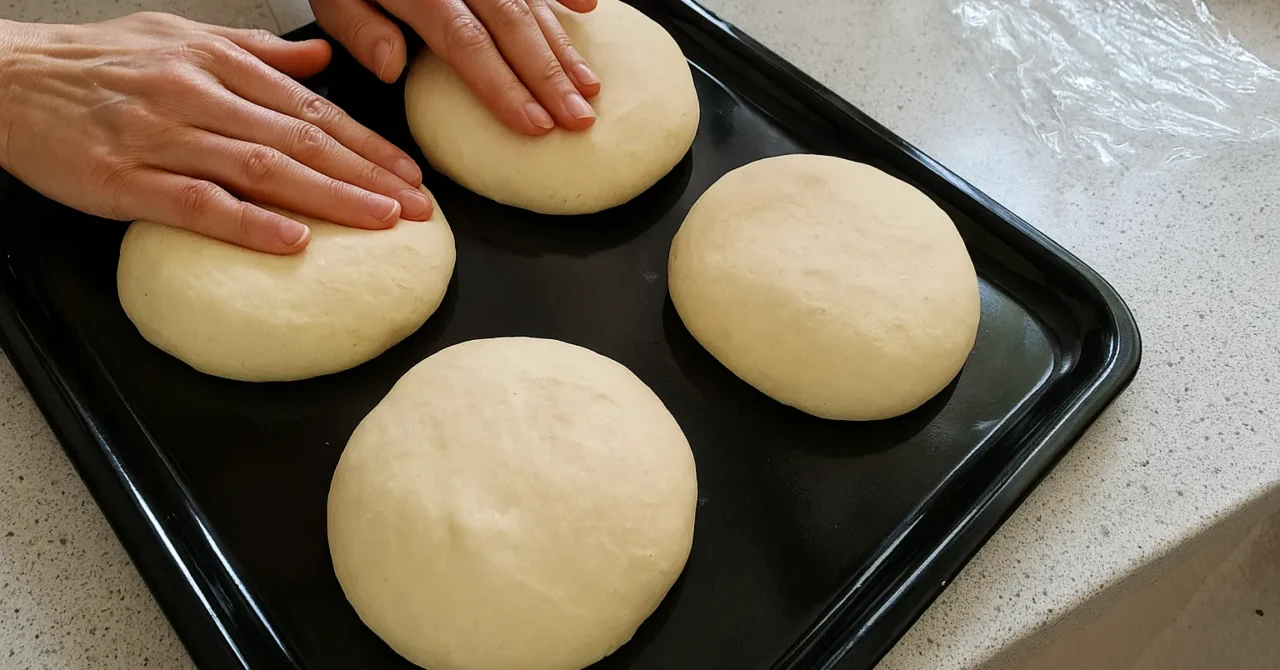 Složení 1 kg hladké mouky (ideální T650 nebo speciální na tažené těsto) 15–20 g soli (cca 2 lžičky) 150 ml rostlinného oleje (slunečnicový nebo řepkový) 550 ml vlažné vody olej (k potření mísy a těsta) Pokyny