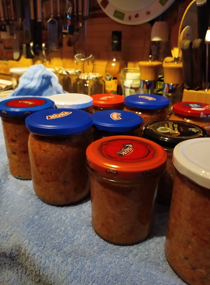 Ingredience 1 kg červených paprik 1 kg zralých rajčat 500 g cibule 1 velká palička česneku (případně 1,5 menší) 1 kg libovějšího bůčku (můžete i plecko) 1–2 pálivé papriky nebo 1 feferonka (dle chuti) Sůl, čerstvě mletý pepř Mletá pálivá paprika podle chuti Olej na potření plechu (volitelné)
