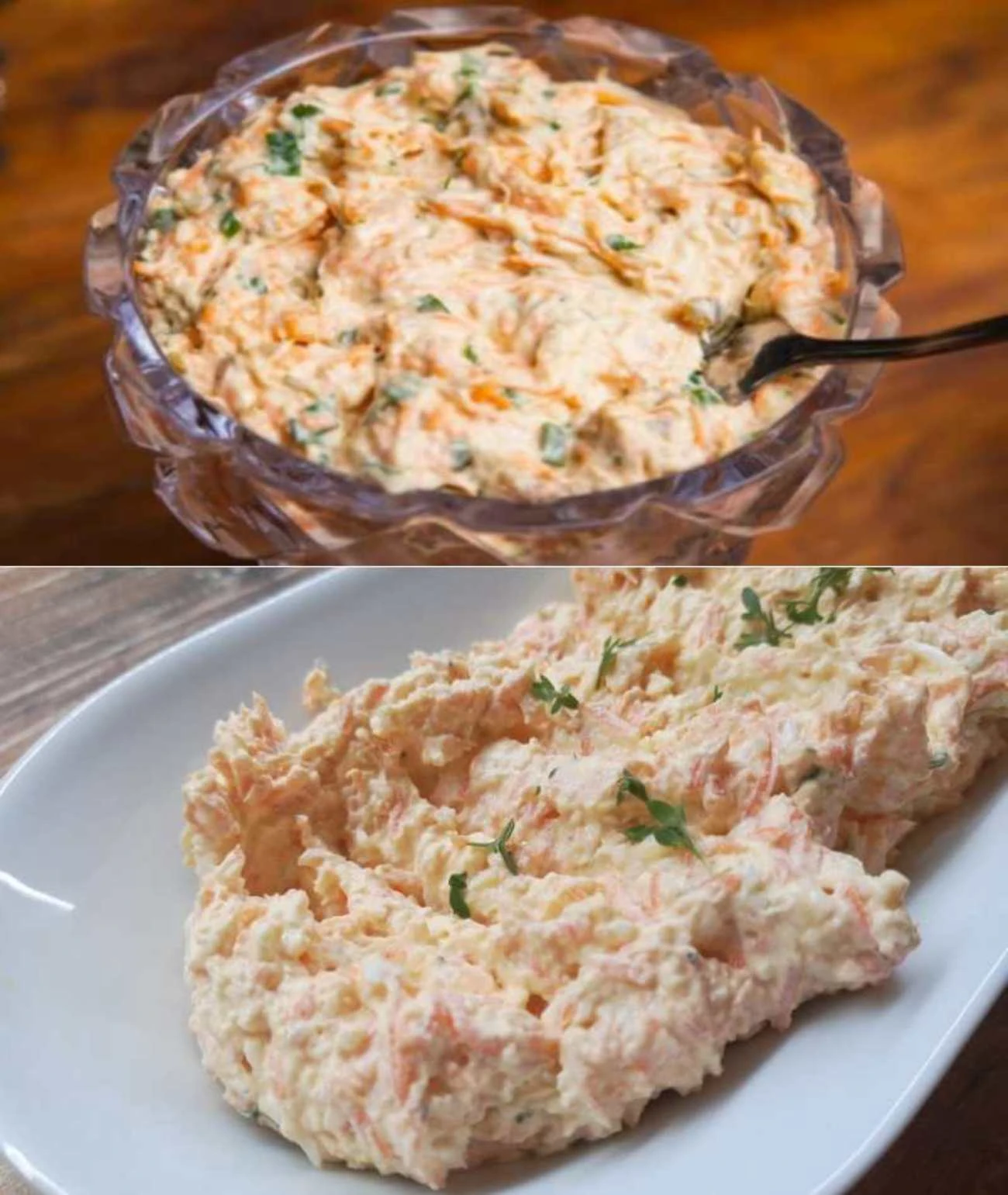 Ingredience 4 lžíce olivového oleje 4 stroužky česneku, nasekané 4 střední mrkve, nahrubo nastrouhané 4 lžíce nasekaných vlašských ořechů 16 lžic hustého jogurtu (ideálně řeckého) ½ lžičky soli nasekaná petržel na dokončení (volitelné: 1 lžička majonézy pro krémovější konzistenci)