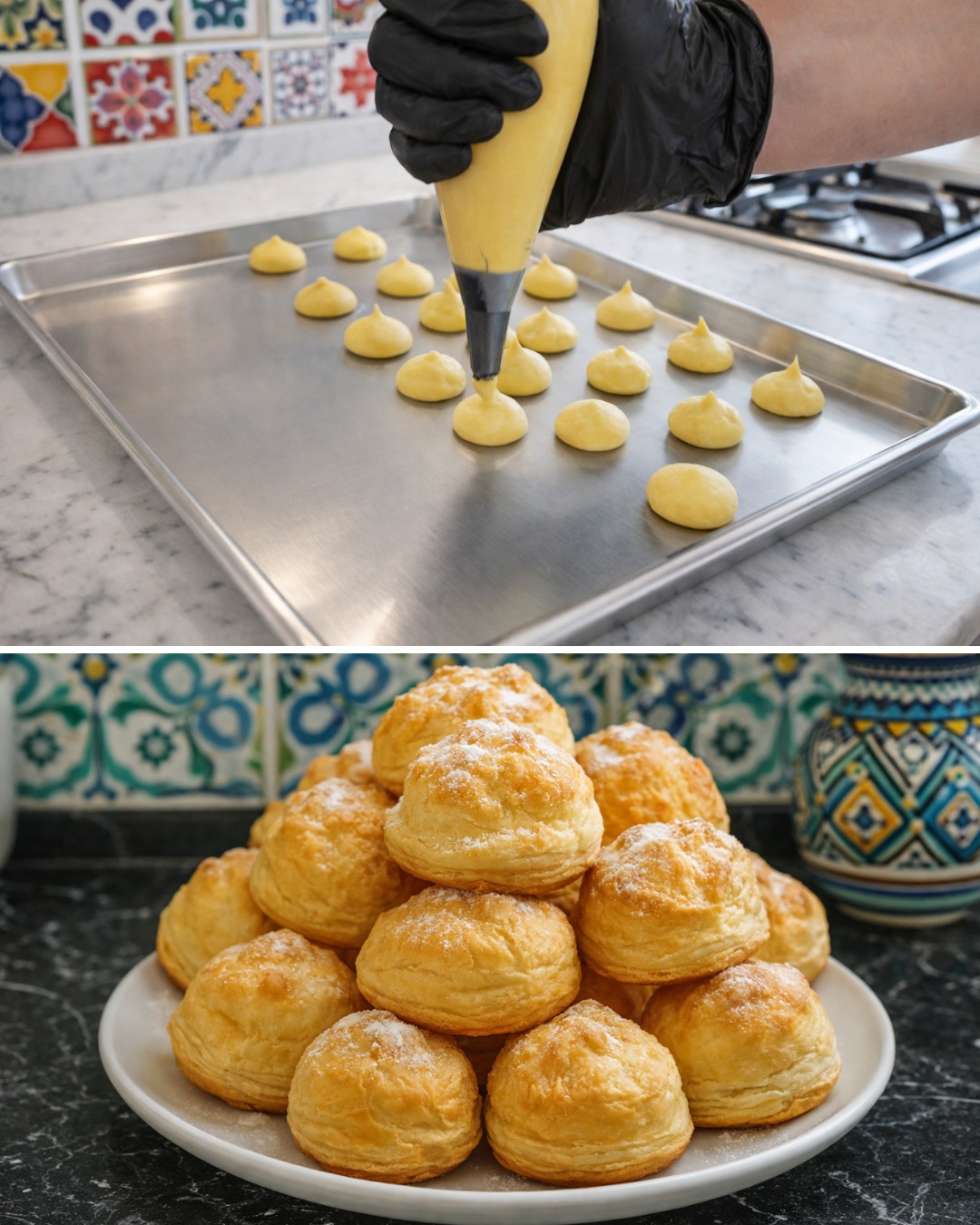 Doporučené vybavení: hrnec s tlustým dnem a silikonová stěrka pro důkladné promíchání těsta a také pevný zdobicí sáček na zdobení.